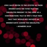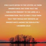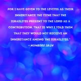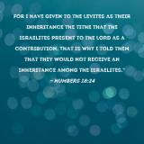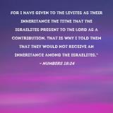 For I have given to the Levites as their inheritance the tithe that the Israelites present to the LORD as a contribution. That is why I told them that they would not receive an inheritance among the Israelites."