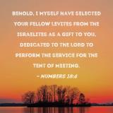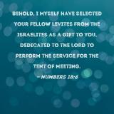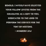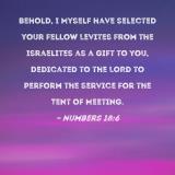 Behold, I Myself have selected your fellow Levites from the Israelites as a gift to you, dedicated to the LORD to perform the service for the Tent of Meeting.