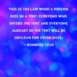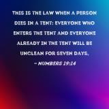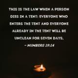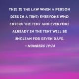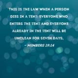 This is the law when a person dies in a tent: Everyone who enters the tent and everyone already in the tent will be unclean for seven days,