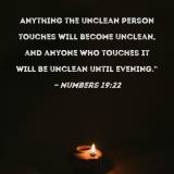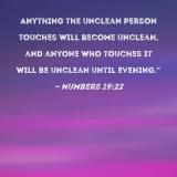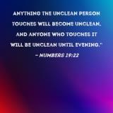 Anything the unclean person touches will become unclean, and anyone who touches it will be unclean until evening."