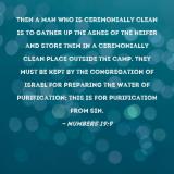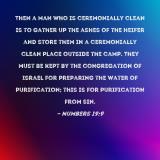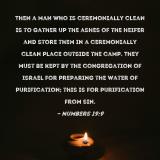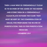 Pictures and Artwork Then a man who is ceremonially clean is to gather up the ashes of the heifer and store them in a ceremonially clean place outside the camp. They must be kept by the congregation of Israel for preparing the water of purification; this is for purification from sin. |