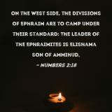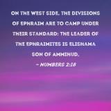 On the west side, the divisions of Ephraim are to camp under their standard: The leader of the Ephraimites is Elishama son of Ammihud,