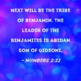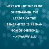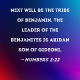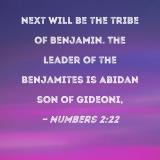 Next will be the tribe of Benjamin. The leader of the Benjamites is Abidan son of Gideoni,