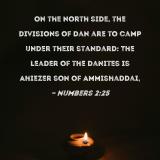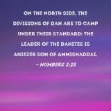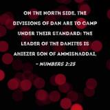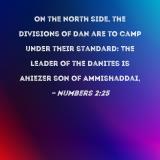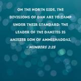 On the north side, the divisions of Dan are to camp under their standard: The leader of the Danites is Ahiezer son of Ammishaddai,