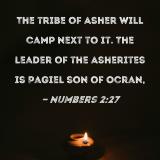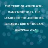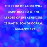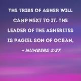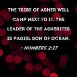 The tribe of Asher will camp next to it. The leader of the Asherites is Pagiel son of Ocran,