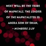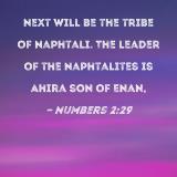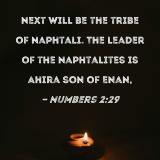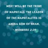Next will be the tribe of Naphtali. The leader of the Naphtalites is Ahira son of Enan,