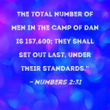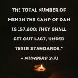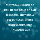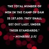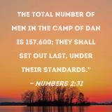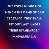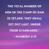 The total number of men in the camp of Dan is 157,600; they shall set out last, under their standards."