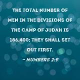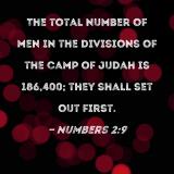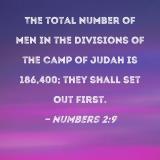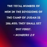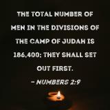 The total number of men in the divisions of the camp of Judah is 186,400; they shall set out first.