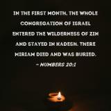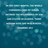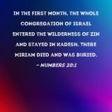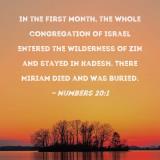 In the first month, the whole congregation of Israel entered the Wilderness of Zin and stayed in Kadesh. There Miriam died and was buried.