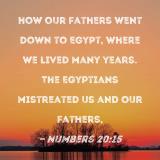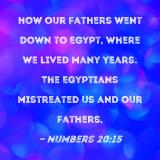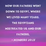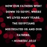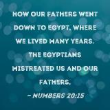 how our fathers went down to Egypt, where we lived many years. The Egyptians mistreated us and our fathers,