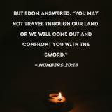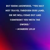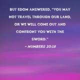 But Edom answered, "You may not travel through our land, or we will come out and confront you with the sword."