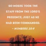 So Moses took the staff from the LORD's presence, just as he had been commanded.