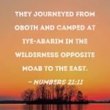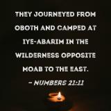 They journeyed from Oboth and camped at Iye-abarim in the wilderness opposite Moab to the east.