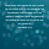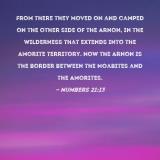From there they moved on and camped on the other side of the Arnon, in the wilderness that extends into the Amorite territory. Now the Arnon is the border between the Moabites and the Amorites.