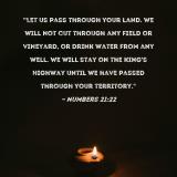 "Let us pass through your land. We will not cut through any field or vineyard, or drink water from any well. We will stay on the King's Highway until we have passed through your territory."
