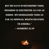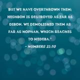 But we have overthrown them; Heshbon is destroyed as far as Dibon. We demolished them as far as Nophah, which reaches to Medeba."