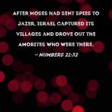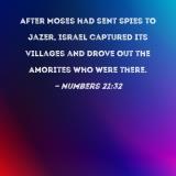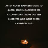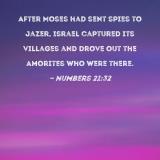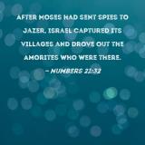 After Moses had sent spies to Jazer, Israel captured its villages and drove out the Amorites who were there.