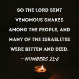 So the LORD sent venomous snakes among the people, and many of the Israelites were bitten and died.