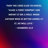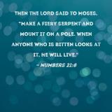 Then the LORD said to Moses, "Make a fiery serpent and mount it on a pole. When anyone who is bitten looks at it, he will live."