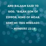 And Balaam said to God, "Balak son of Zippor, king of Moab, sent me this message: