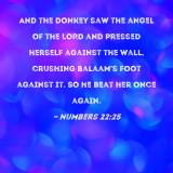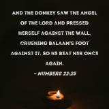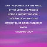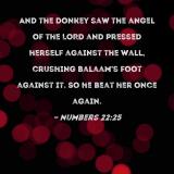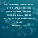 And the donkey saw the angel of the LORD and pressed herself against the wall, crushing Balaam's foot against it. So he beat her once again.
