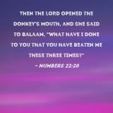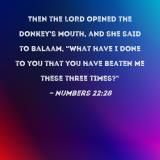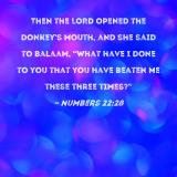 Then the LORD opened the donkey's mouth, and she said to Balaam, "What have I done to you that you have beaten me these three times?"