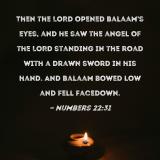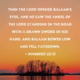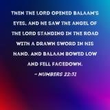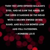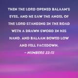 Then the LORD opened Balaam's eyes, and he saw the angel of the LORD standing in the road with a drawn sword in his hand. And Balaam bowed low and fell facedown.
