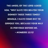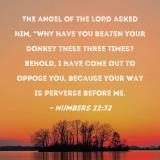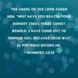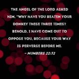 The angel of the LORD asked him, "Why have you beaten your donkey these three times? Behold, I have come out to oppose you, because your way is perverse before me.