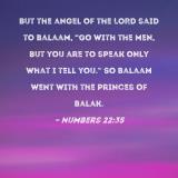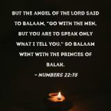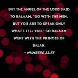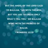 But the angel of the LORD said to Balaam, "Go with the men, but you are to speak only what I tell you." So Balaam went with the princes of Balak.