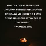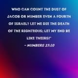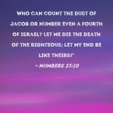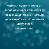 Who can count the dust of Jacob or number even a fourth of Israel? Let me die the death of the righteous; let my end be like theirs!"