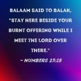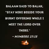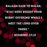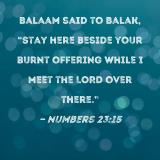 Balaam said to Balak, "Stay here beside your burnt offering while I meet the LORD over there."