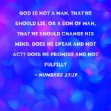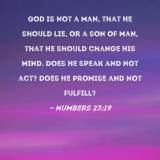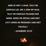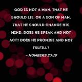God is not a man, that He should lie, or a son of man, that He should change His mind. Does He speak and not act? Does He promise and not fulfill?