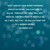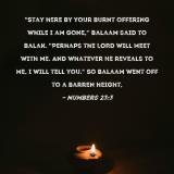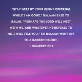 "Stay here by your burnt offering while I am gone," Balaam said to Balak. "Perhaps the LORD will meet with me. And whatever He reveals to me, I will tell you." So Balaam went off to a barren height,