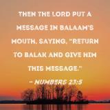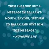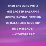 Then the LORD put a message in Balaam's mouth, saying, "Return to Balak and give him this message."