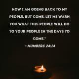 Now I am going back to my people, but come, let me warn you what this people will do to your people in the days to come."
