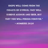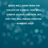Ships will come from the coasts of Cyprus; they will subdue Asshur and Eber, but they too will perish forever."