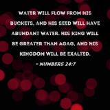 Water will flow from his buckets, and his seed will have abundant water. His king will be greater than Agag, and his kingdom will be exalted.