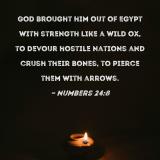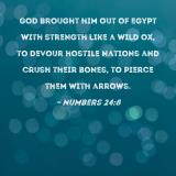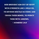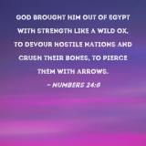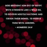God brought him out of Egypt with strength like a wild ox, to devour hostile nations and crush their bones, to pierce them with arrows.