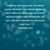 "Phinehas son of Eleazar, the son of Aaron the priest, has turned My wrath away from the Israelites; for he was zealous for My sake among them, so that I did not consume the Israelites in My zeal.
