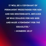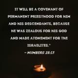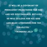 It will be a covenant of permanent priesthood for him and his descendants, because he was zealous for his God and made atonement for the Israelites."