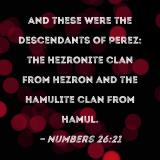 And these were the descendants of Perez: the Hezronite clan from Hezron and the Hamulite clan from Hamul.