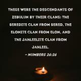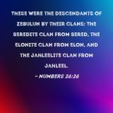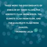 These were the descendants of Zebulun by their clans: The Seredite clan from Sered, the Elonite clan from Elon, and the Jahleelite clan from Jahleel.