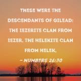 These were the descendants of Gilead: the Iezerite clan from Iezer, the Helekite clan from Helek,