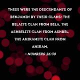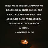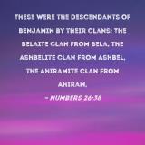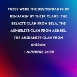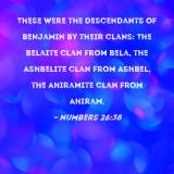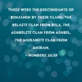 These were the descendants of Benjamin by their clans: The Belaite clan from Bela, the Ashbelite clan from Ashbel, the Ahiramite clan from Ahiram,