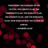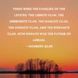These were the families of the Levites: The Libnite clan, the Hebronite clan, the Mahlite clan, the Mushite clan, and the Korahite clan. Now Kohath was the father of Amram,