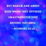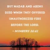 but Nadab and Abihu died when they offered unauthorized fire before the LORD.