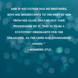 And if his father has no brothers, give his inheritance to the next of kin from his clan, that he may take possession of it. This is to be a statutory ordinance for the Israelites, as the LORD has commanded Moses.'"