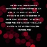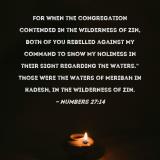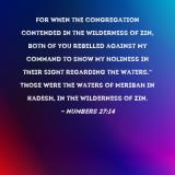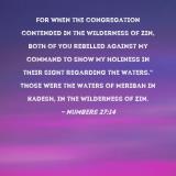 for when the congregation contended in the Wilderness of Zin, both of you rebelled against My command to show My holiness in their sight regarding the waters." Those were the waters of Meribah in Kadesh, in the Wilderness of Zin.