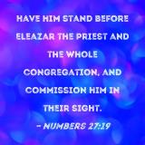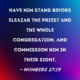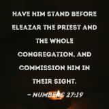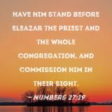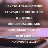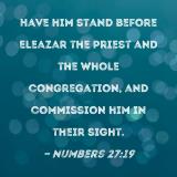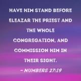 Have him stand before Eleazar the priest and the whole congregation, and commission him in their sight.