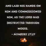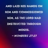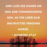 and laid his hands on him and commissioned him, as the LORD had instructed through Moses.